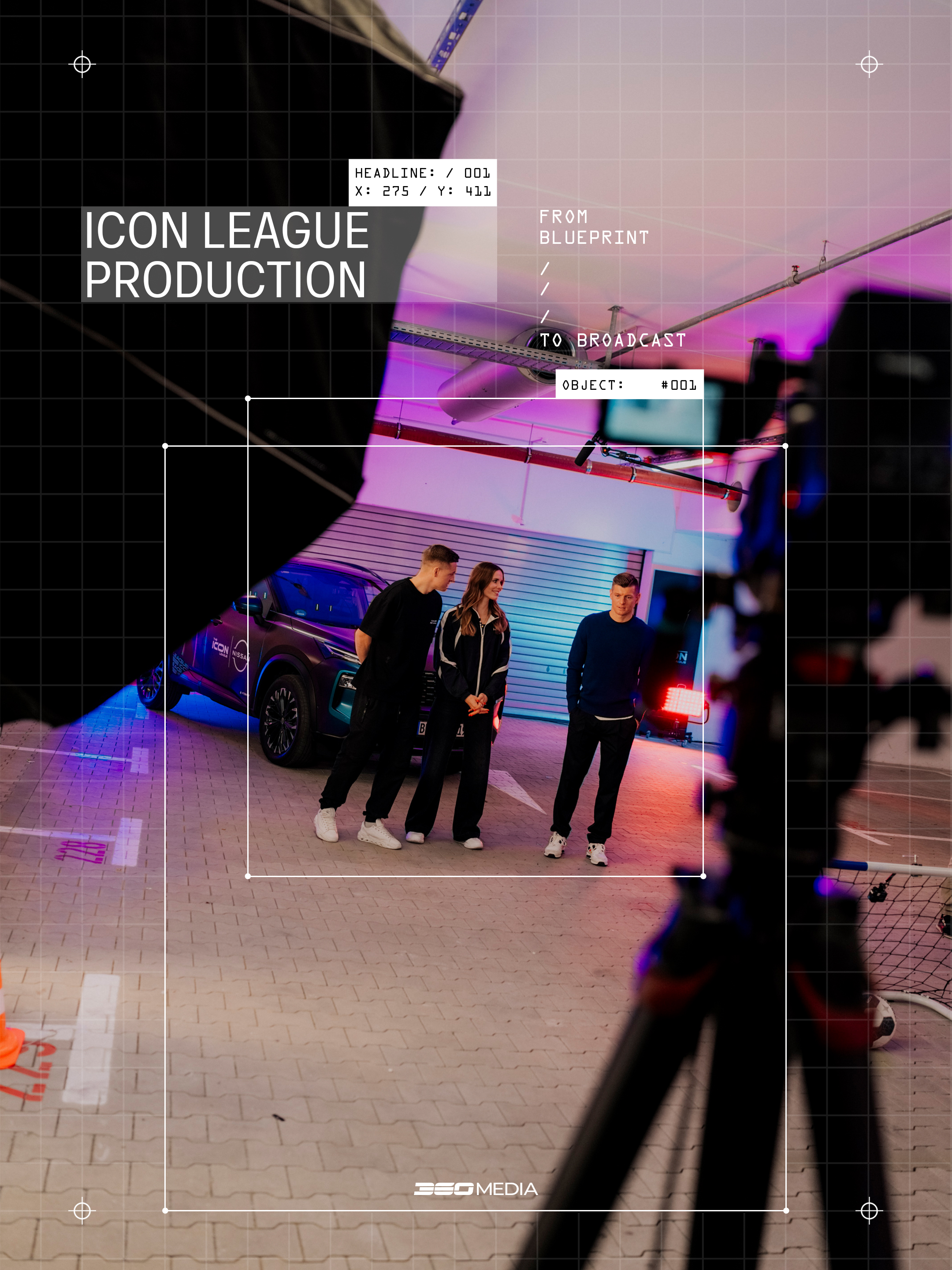 Die ICON League wird von 360Media als End-to-End-Produktion gesteuert – von der ersten Teaser-Idee bis zum finalen Broadcast. Eine zentrale Produktionslinie sorgt für einen konsistenten Look über Creative System, Live-Matchdays und Postproduktion hinweg, in dem Sport und Entertainment nahtlos ineinandergreifen. Aktivierungen von Partnern wie Nissan, Philips und freenet werden gezielt als Content-Momente inszeniert und über das gesamte Venue verteilt. Ergänzt wird das Format durch eine dokumentarische Begleitung der ersten Saison in Kooperation mit Pluto TV, die die ICON League weit über den Court hinaus erlebbar macht.